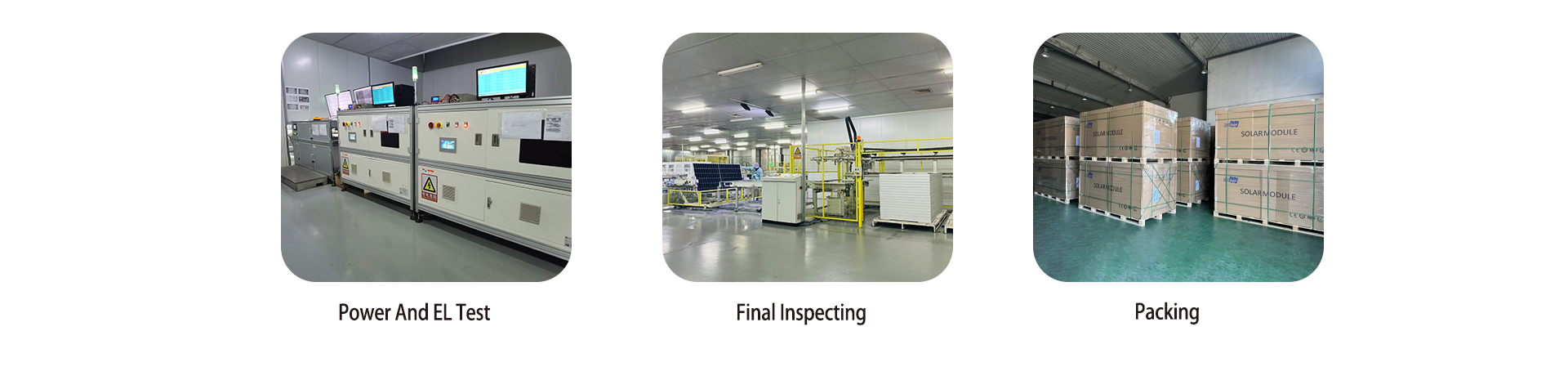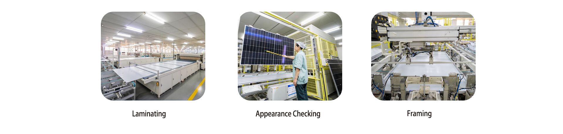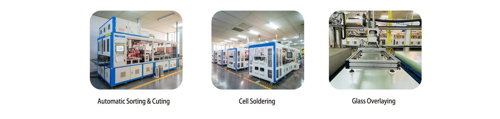 We have multiple new intelligent production lines that can realize fully automatic production like lossless laser cutting, millimeter-level tack soldering, automatic type-setting, intelligent equipment testing, etc.With annual production capacity of 1GW, our current production lines cover production of solar panels including cell sizes of 166, 182P、183.75N、210R and 210N mm. We have realized the production of Perc, TOPCon and Bifacial glass panels. We can also provide customized service.We have achieved certificates like TUV、CE、ISO、CGC, etc.